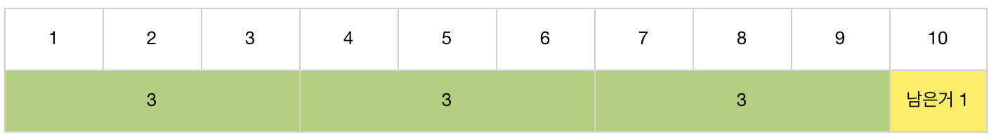 10을 3개씩 나눈 뒤 남은 것이 한 개입니다. 그래서 1을 반환하게 됩니다.