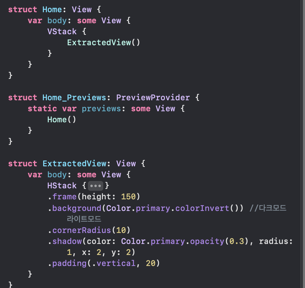 .background(Color.primary.colorInvert()) //다크모드 라이트모드