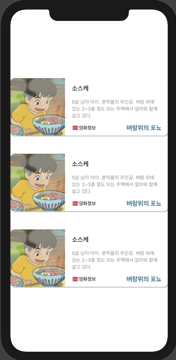 이번 프로젝트에서는 지브리 스튜디오의 캐릭터의 정보를 앱에 나타내면서 SwiftUI