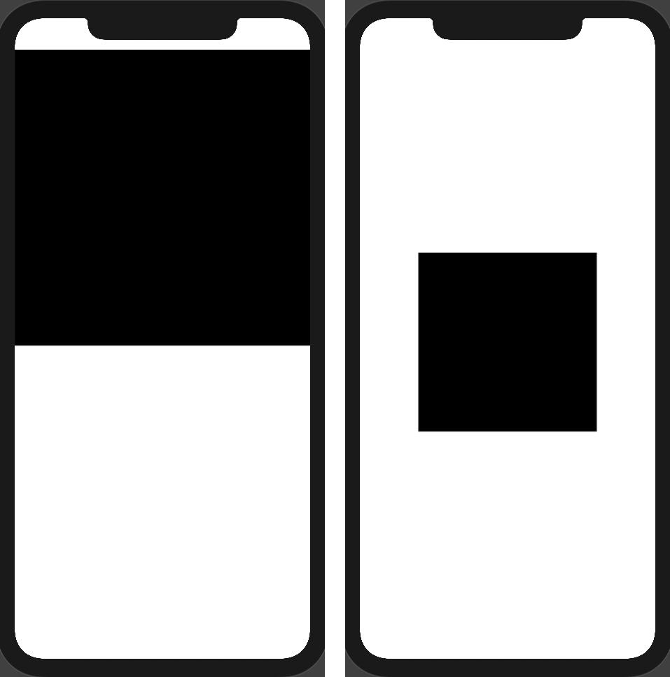 우리는 커서를 보이지 않는 직사각형의 오른쪽 상단 가장자리로 이동했고, 그런 다음 X 및 Y 좌표 모두에 대해 rect의 너비를 사용하여 path를 다른 점으로 그리도록 지시했습니다. 그리고 다음 하위 path를 닫기 전에 왼쪽 하단 모서리로 돌아갔습니다. 이렇게 동적인 MySquare Shape를 만들었고 그렇기 때문에 .frame수정자를 사용하여 크기를 조정할 수 있는 거죠!