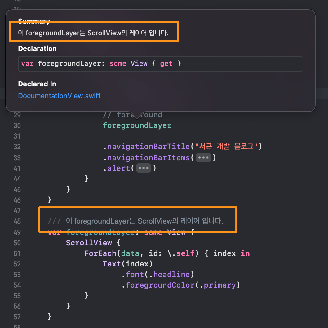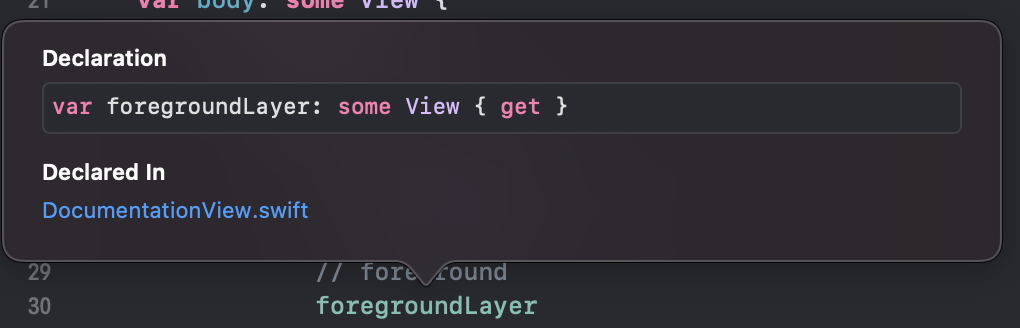 body의 foregroundLayer에 ⌥ + 클릭 을해서 documentation을 한번 확인해볼게요.