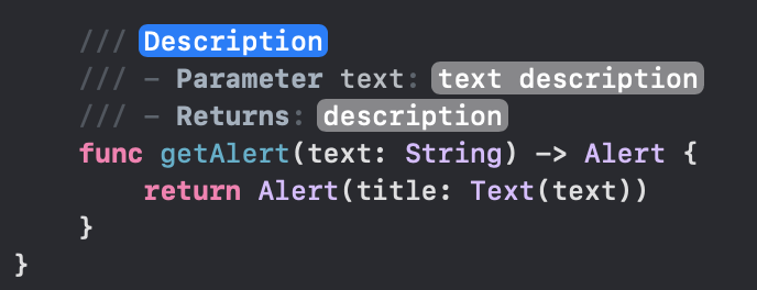 func getAlert(text: String) -> Alert {