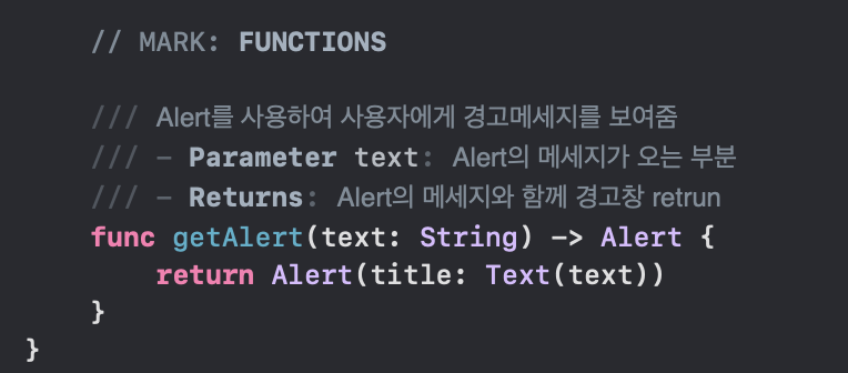 /// getAlert(text: "안녕하세요") -> Alert(title: Text("안녕하세요"))