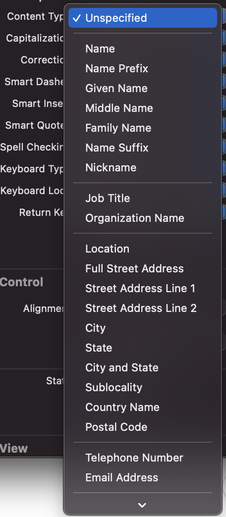 semantic meaning을 나타냄. 이 프로퍼티를 사용하면, 사용자가 입력하는 내용에 대해 예상되는 semantic meaning에 대한 키보드 및 시스템 정보를 제공. (기본값 Nil)