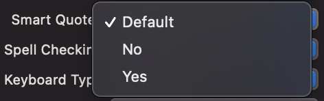Default는 설정 > 키보드의 스마트 구두점, 영어로는 Smart Punctuation을 따른다.