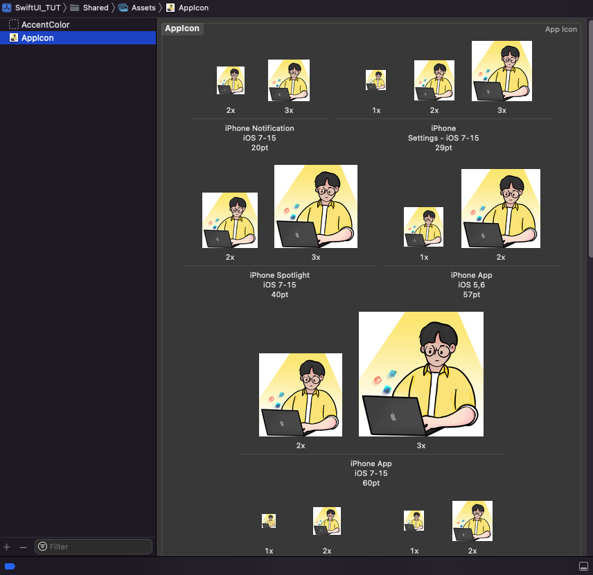 AppIcon.appiconset 폴더를 살펴보면 성공적으로 png파일이 생성된것을 확인하면 준비는 끝이다.