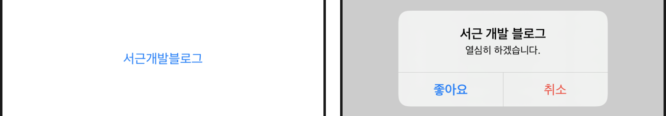 Alert(title: Text("서근 개발 블로그"), message: Text("열심히 하겠습니다."), primaryButton: .destructive(Text("취소"), action: {
