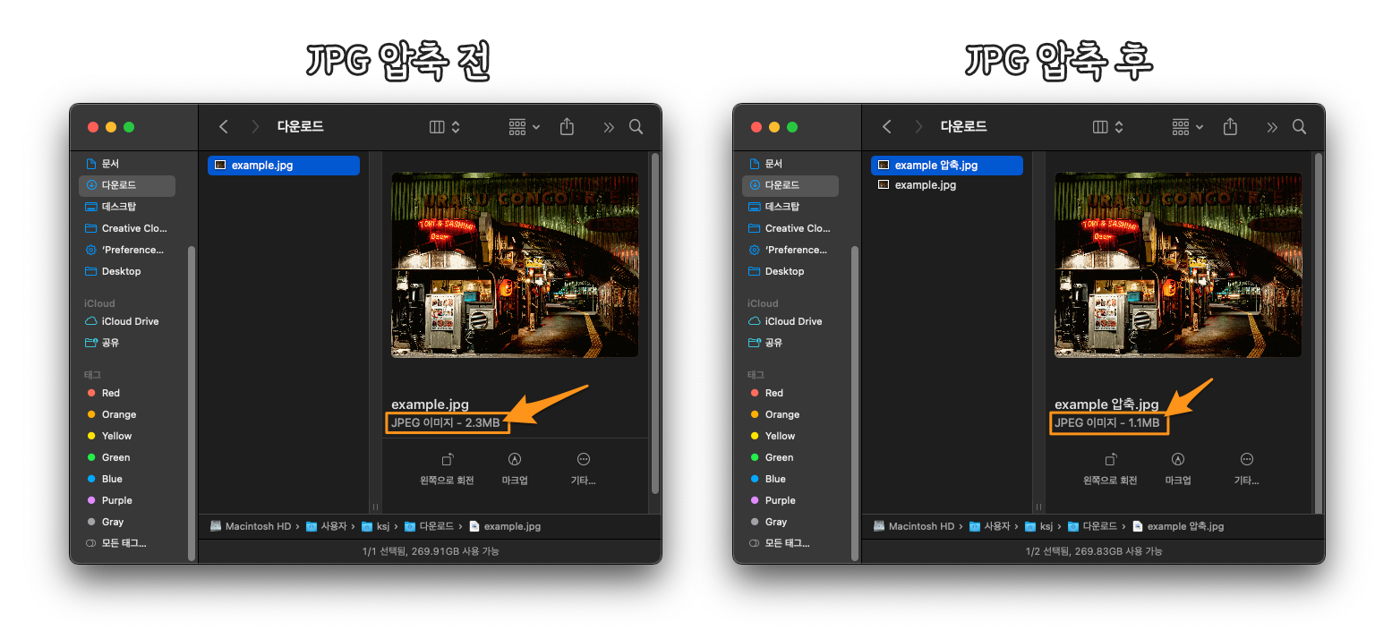 2.3MB ➜ 1.1MB로 크게 압축이 되는 것을 확인할 수 있습니다.