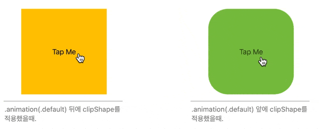 예를 들어, 기본 Animation으로 색상을 변경할 수 있지만, 클립 모양에 보간 스프링을 사용할 수 있습니다.
