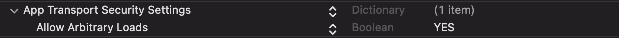 2. App Transport Security Settings을 추가한 후, 그안에 Allow Arbitrary Loads를 추가해주세요.