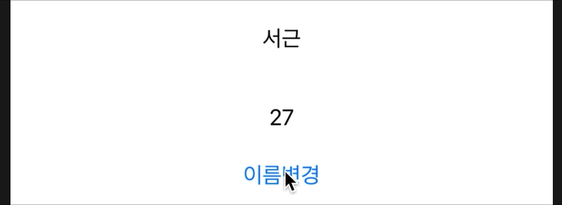 View안에 ViewModel을 가져오는데 @StateObject로 가져와야 합니다. Text쪽도 위와같이 변경해줬고, Button을 생성해서 클릭시 이름이 '포뇨'로 바뀌게 하려고 합니다. 이렇게 하고 런을 해보면 아무 반응이 없습니다. 왜그럴까요?