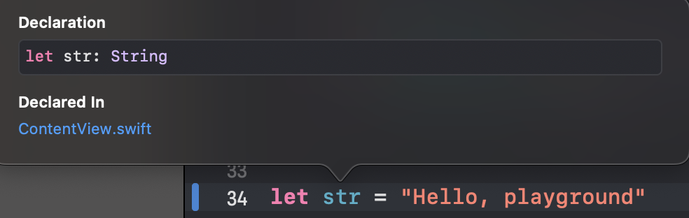 Swift는 생성 될 때 주어진 값에 따라 각 변수와 상수에 유형을 할당합니다. 따라서 아래와 같은 코드를 작성하면 문자열 String이 포함되어 있음을 알 수 있습니다.