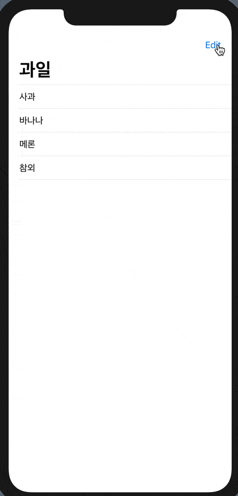 마지막으로 Navigation Title과 오른쪽 상단의 Edit 버튼을 추가해 보도록 하겠습니다.