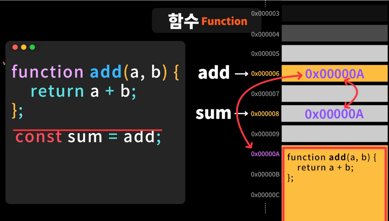 즉, sum이라는 변수는 함수의 객체 주소를 가리키고 있다.