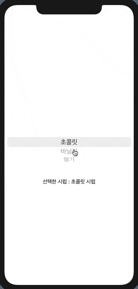 Text("선택한 시럽 : \(selectedFlavor.rawValue) 시럽")