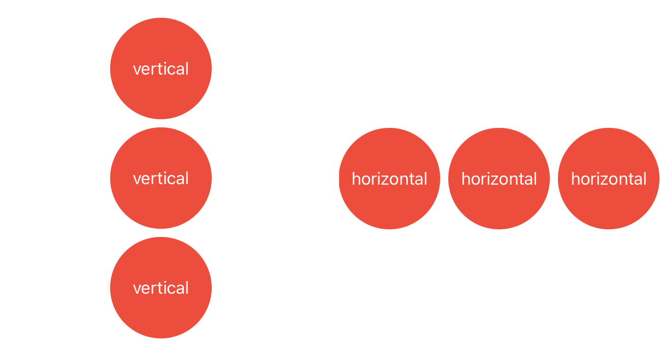 이제 방향을 정해줄 수 있는데 vertical으로 정해주면 VStack을 자식 뷰로 채택해야 하고, horizontal이면 HStack을 채택해야 합니다.