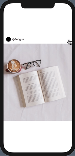 이제 actionSheet를 활용해볼게요. 만약 Instrgrame 같은 어플에서 오른쪽에 더보기 버튼을 누르면 공유, 삭제, 신고 버튼을 나타나게 하고 또 다른 옵션으로는 내 게시물일 때와 다른 사람의 게시물일 때를 다르게 나오게 해 줄 수 있습니다.