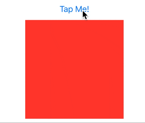 이렇게만 작성하면 "Tap Me!" 를 눌렀을때 빨간상자가 나타나게 됩니다. 여기서 버튼에 애니메Animation withAnimation 효과를 추가해봅시다.