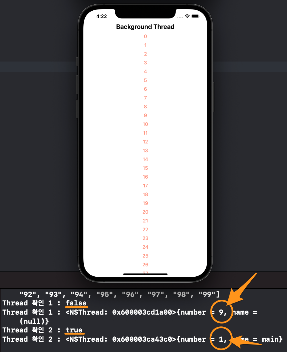 마지막으로 알아볼 것은 앱에서 간단하게 이를 확인할 수 있는 방법입니다. 즉, 지금 실행되는 코드가 어느 Thread에 위치해 있는지 알 수 있는 방법이죠.