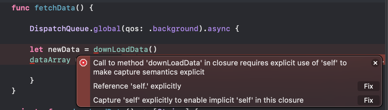 이렇게 dispatchQueue를 적용시키면 한 가지 오류를 확인할 수 있습니다.