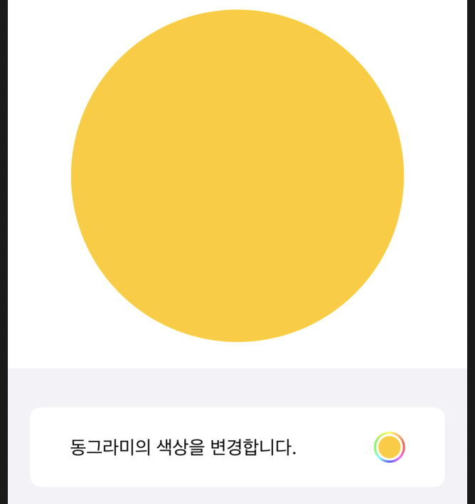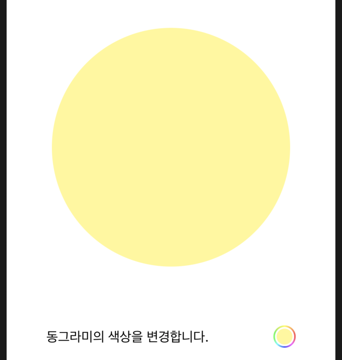 Circle하나를 만들고 ColorPicker 를 사용하여 색상이 선택될 때 마다 동그라마의 색상이 변경 되도록 하겠습니다.