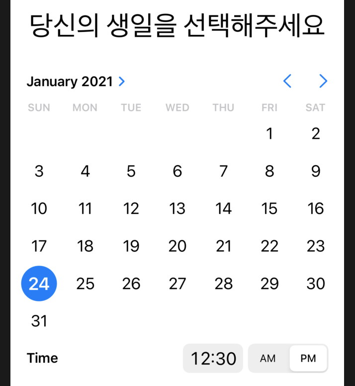 DatePicker("당신의 생일을 선택해주세요", selection: $date)