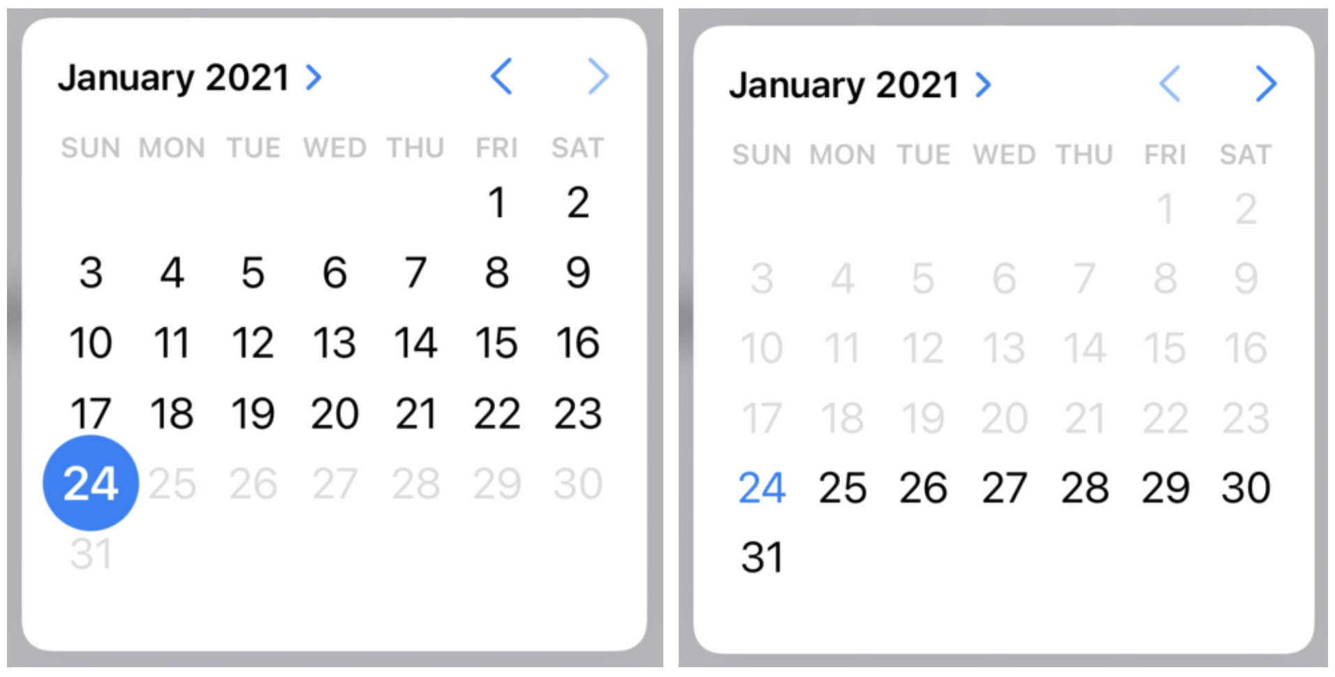 iOS 14부터는 새로운 기능 GraphicalDatePickerStyle()을 사용하여 정확한 시간을 입력 할 수있는 달력을 표시하는 고급 날짜 선택기를 사용할 수 있습니다 .
