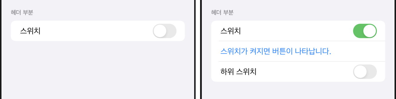Text("스위치가 켜지면 버튼이 나타납니다.")