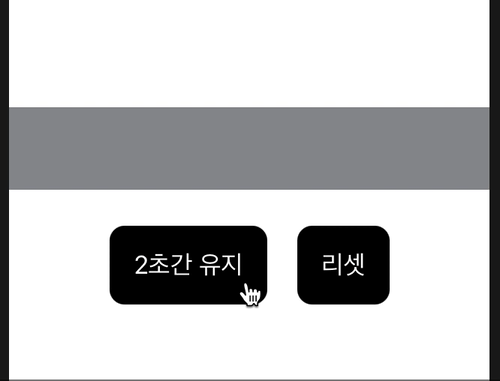 이렇게 실행을 해보면 손가락을 중간에 떼면 정상적으로 loading bar가 0으로 돌아갑니다. 하지만 2초간 유지했을 때는 갑자기 green색으로 변하면서 다시 0으로 돌아가는 것을 확인할 수 있는데, 이때는 지연 효과를 하나 추가해주면 해결 가능합니다.
