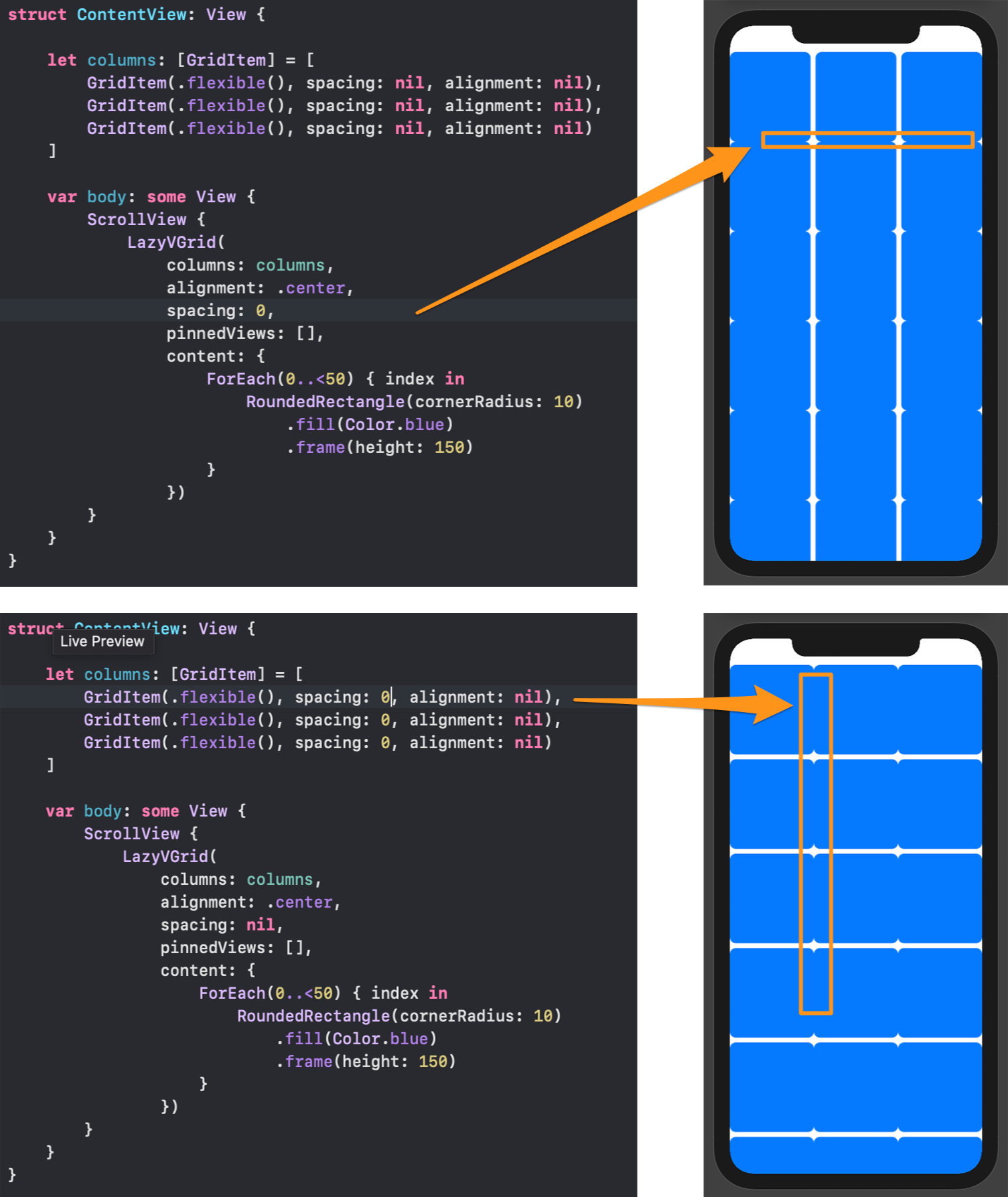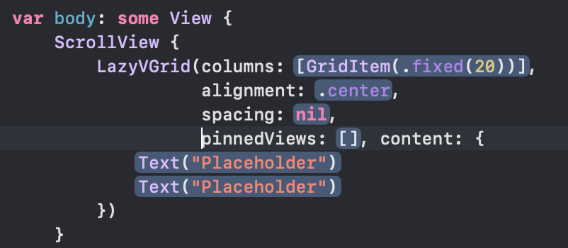 GridItem(.flexible(), spacing: 6, alignment: nil),