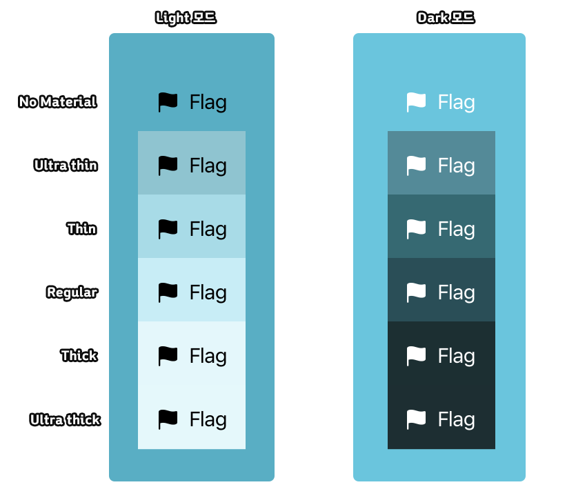 Material을 추가하여 background(_:ignoresSafeAreaEdges:) 수정자와 함께 사용 가능하다.