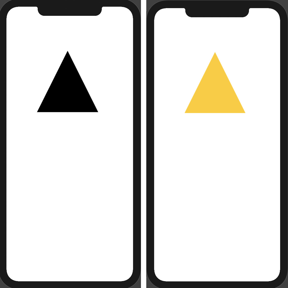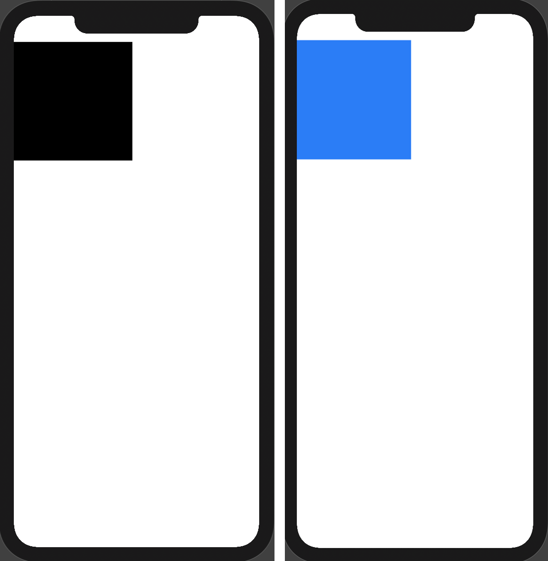 우리는 커서를 보이지 않는 직사각형의 오른쪽 상단 가장자리로 이동했고, 그런 다음 X 및 Y 좌표 모두에 대해 rect의 너비를 사용하여 path를 다른 점으로 그리도록 지시했습니다. 그리고 다음 하위 path를 닫기 전에 왼쪽 하단 모서리로 돌아갔습니다. 이렇게 동적인 MySquare Shape를 만들었고 그렇기 때문에 .frame수정자를 사용하여 크기를 조정할 수 있는 거죠!