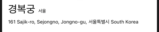 Text("161 Sajik-ro, Sejongno, Jongno-gu, 서울특별시 South Korea")