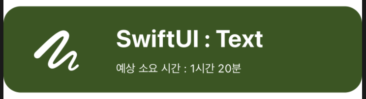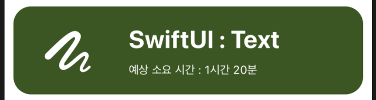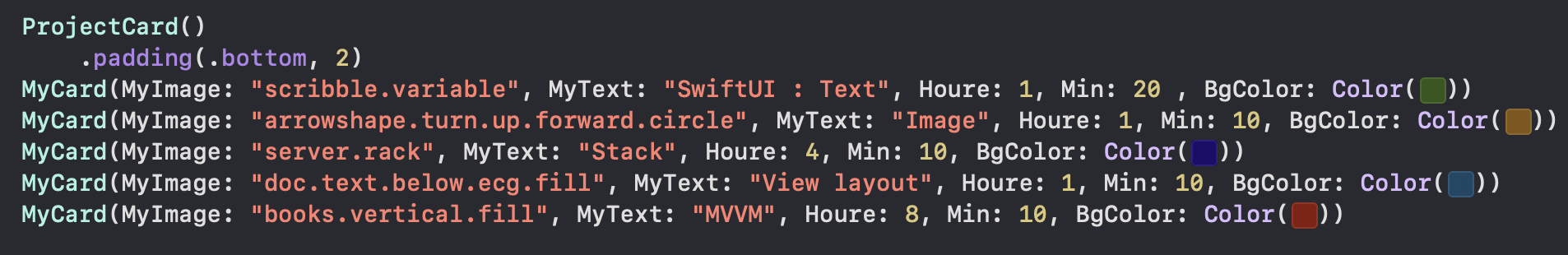 MyCard(MyImage: "scribble.variable", MyText: "SwiftUI : Text", Houre: 1, Min: 20 , BgColor: Color())