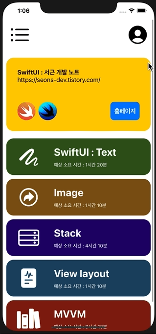 #3 ContentView 상단에 메뉴바 만들고, 위 카드 호출