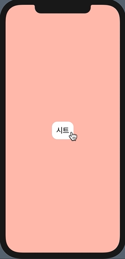 sheet와 유사하게 작동되는 수정자인 FullScreenCover은 sheet와 동일하지만 이름 그대로 화면을 꽉 채워주는 시트라고 보면 됩니다. sheet와 한번 비교해보겠습니다.