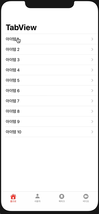 이제 NavigationView 의 TabView에 List를 사용하여 아이템을 추가해주도록 하겠습니다.