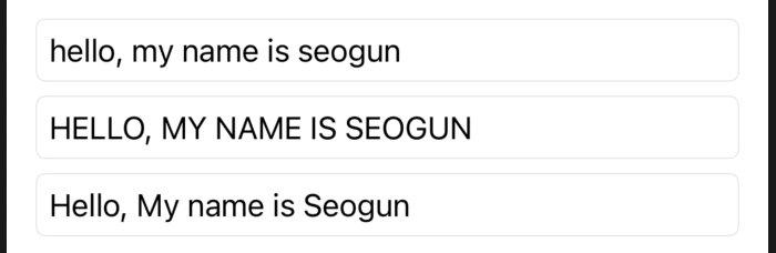 .textCase(.lowercase)- 소문자.textCase(.uppercase)- 대문자.textCase(.none)- 사용자 지정