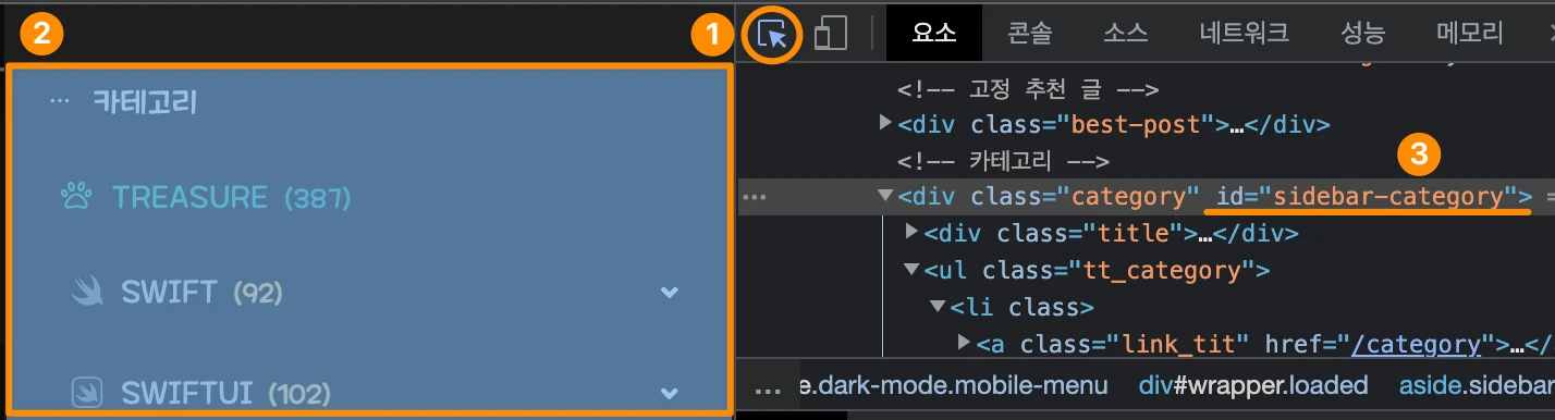 id값을 복사해준다. (저의 경우id="sidebar-category")- 만약