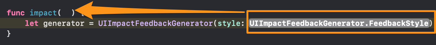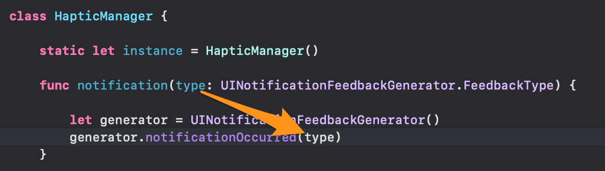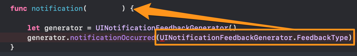 이제 우리는 괄호 안에 있는 UINotificationFeedbackGenerator.FeedbackType를 잘라서 notification의 함수에 전달해줄 것입니다.
